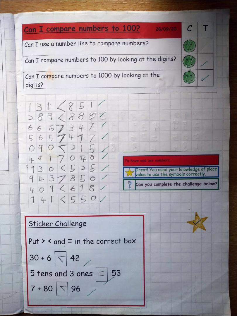 Through the explicit teaching of the Mathematical skills, both the teachers and the pupils assess their learning continuously throughout the lesson.